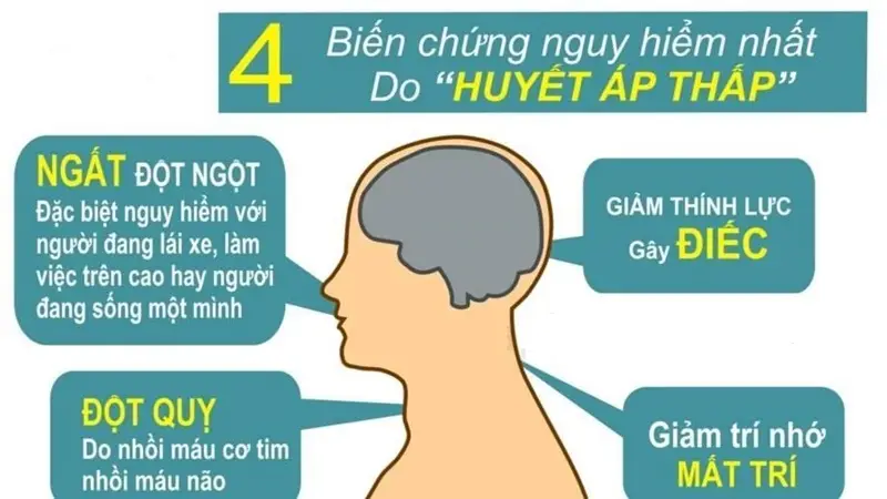 Huyết áp thấp không phải lúc nào cũng là bệnh nhẹ, mà có thể dẫn đến các biến chứng nguy hiểm như đột quỵ huyết áp thấp hoặc các vấn đề liên quan đến hệ thần kinh và tim mạch. Nhận biết sớm các dấu hiệu cảnh báo như mệt mỏi, đau đầu, chóng mặt, mất tập trung, hoa mắt hay da lạnh, nhợt nhạt… là rất quan trọng để có biện pháp xử lý kịp thời.