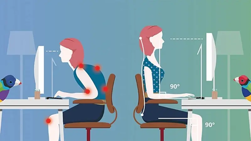 Chẳng hạn, lưng cần giữ thẳng, vai thả lỏng, chân chạm đất thoải mái, và cổ không cúi quá thấp hoặc quá cao so với màn hình máy tính. Khi bạn duy trì được tư thế đúng, các cơ quanh cổ và vai sẽ không bị quá tải, làm giảm nguy cơ mỏi hoặc đau. Ngoài ra, bạn nên lập kế hoạch nghỉ ngơi định kỳ để thư giãn các cơ và giảm căng thẳng cho vùng cổ và vai.